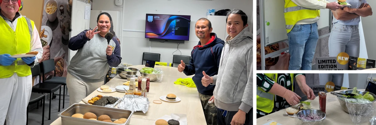 To celebrate the launch of the new Limited Edition Angel Bay flavour, the Angel Bay team headed to Dunedin, where the patties are made, and cooked burgers for ANZCO Foods Green Island team.