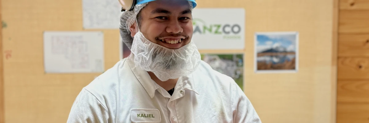 Kaliel ‘Daddy’ Robinson has been at ANZCO Foods Eltham for around six years now. He started out on the slaughterfloor, and when one of the supervisors left, he and his friends thought it'd be a bit of a laugh for him to apply for the position of trainee supervisor - and he actually got the job!